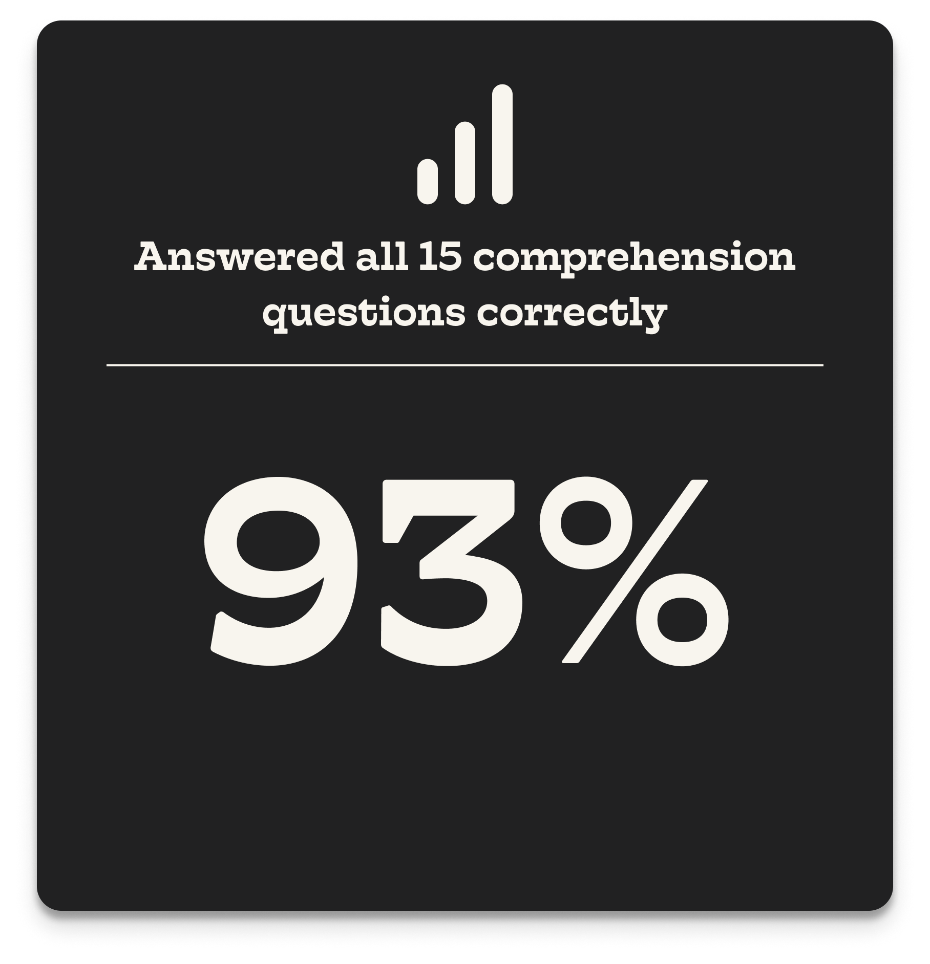 93% answered all 15/15 comprehension questions correctly