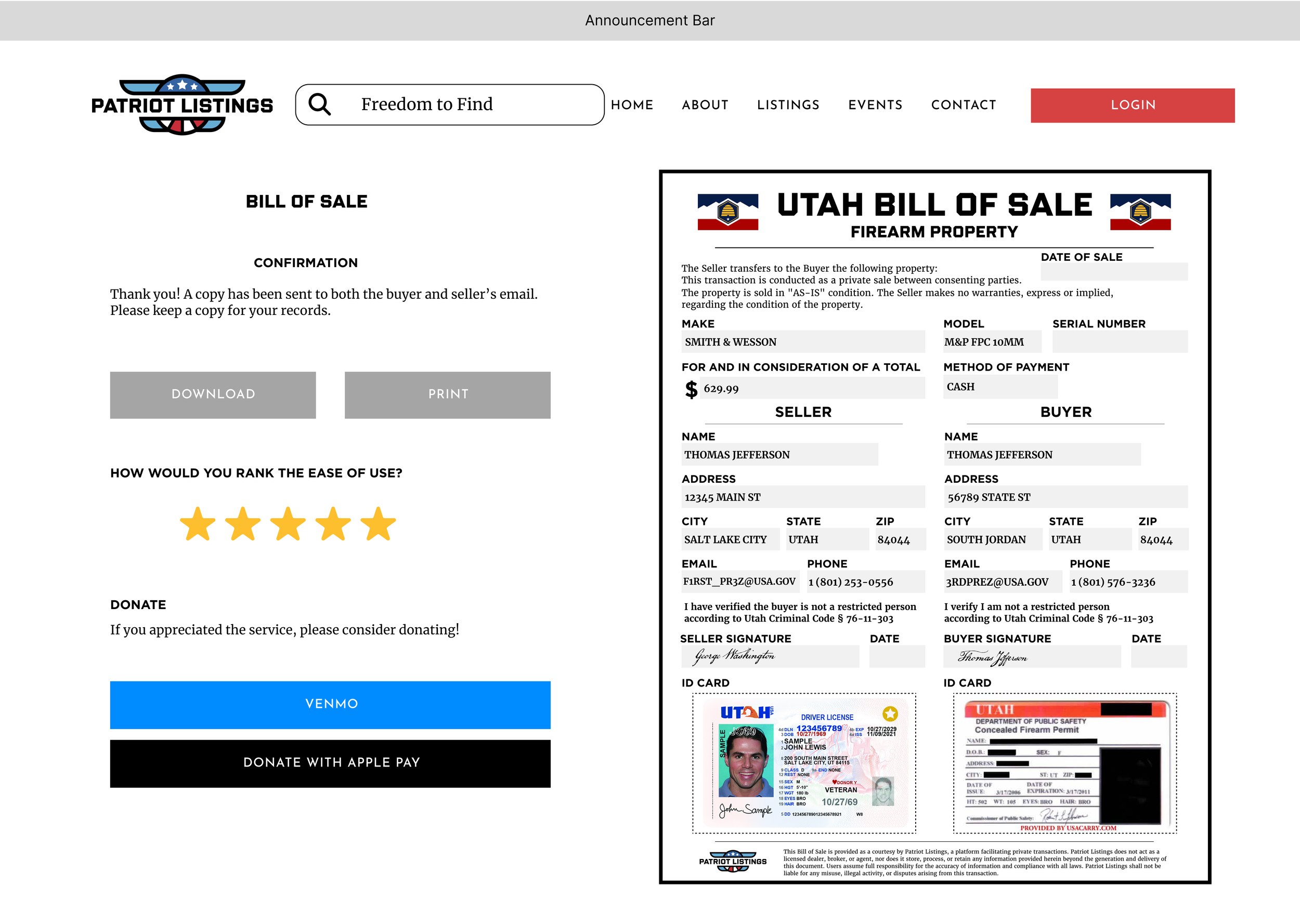 Bills of sale are easy to find, but hard to trust. Existing options were either too vague to feel legitimate, or too dense to complete correctly without second-guessing. Users needed a faster way to create a Utah-compliant record without needing to interpret legal language or hunt for missing fields.